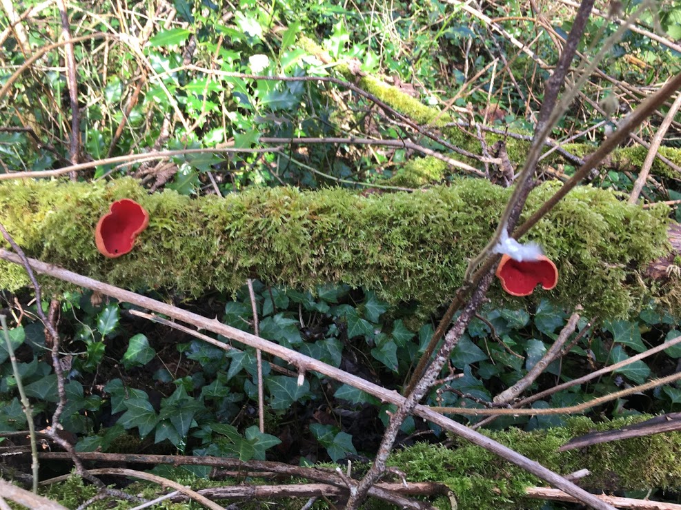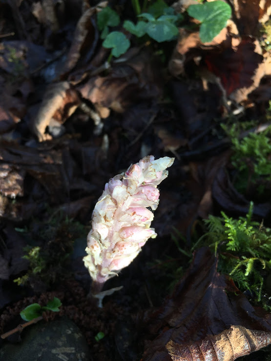 On the way back I spotted the Scarlet elfcups I missed on the way down and these curious spikes that I believe are Toothwort.