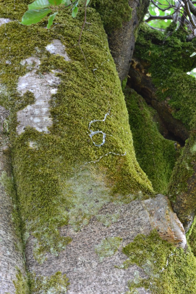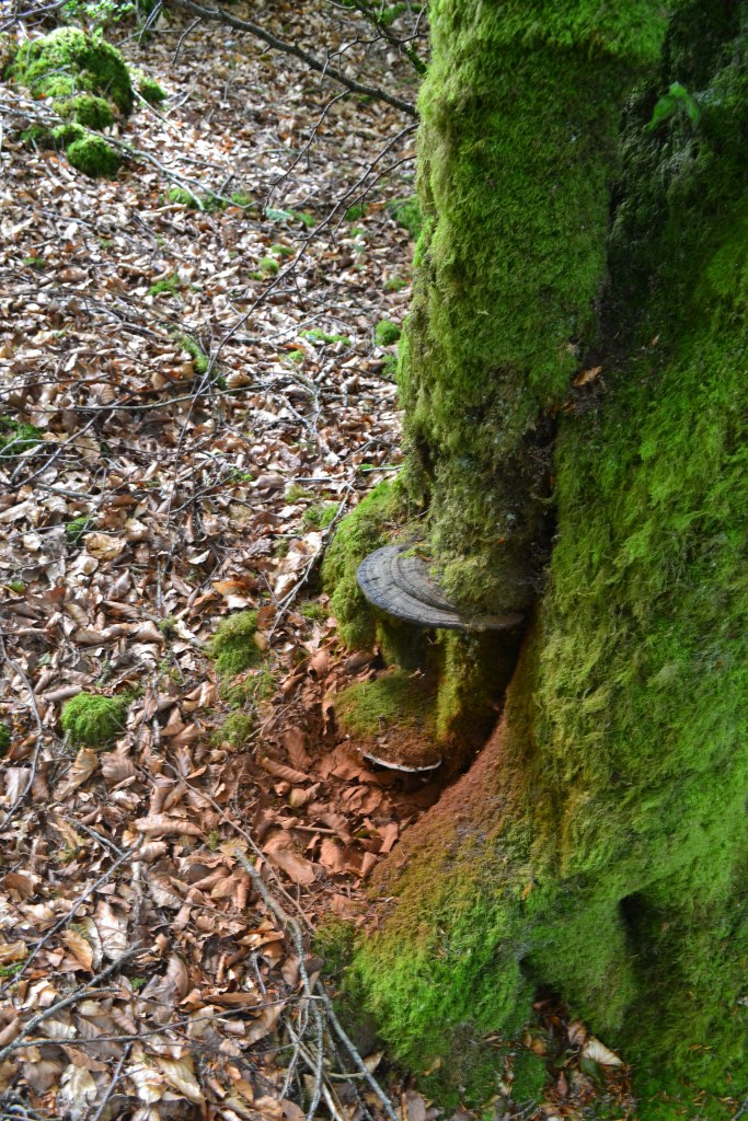 Everywhere there were boltholes and hidden places, even where bracket fungi seemed to rust, and I fancied at glyphs left by leaf travelling caterpillars and snail trails.