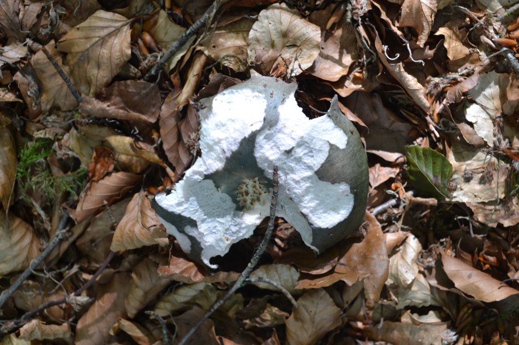 I decided there were probably better things to wander about near and found instead what at first appeared a curious regiment of beech trees, a stripe sloping down to the far more common conifer woods, cool and strongly shaded. The ground snapped and shushed in that pleasing way a beech wood does, and I kept an eye out for brittlegill fungi on the slope.