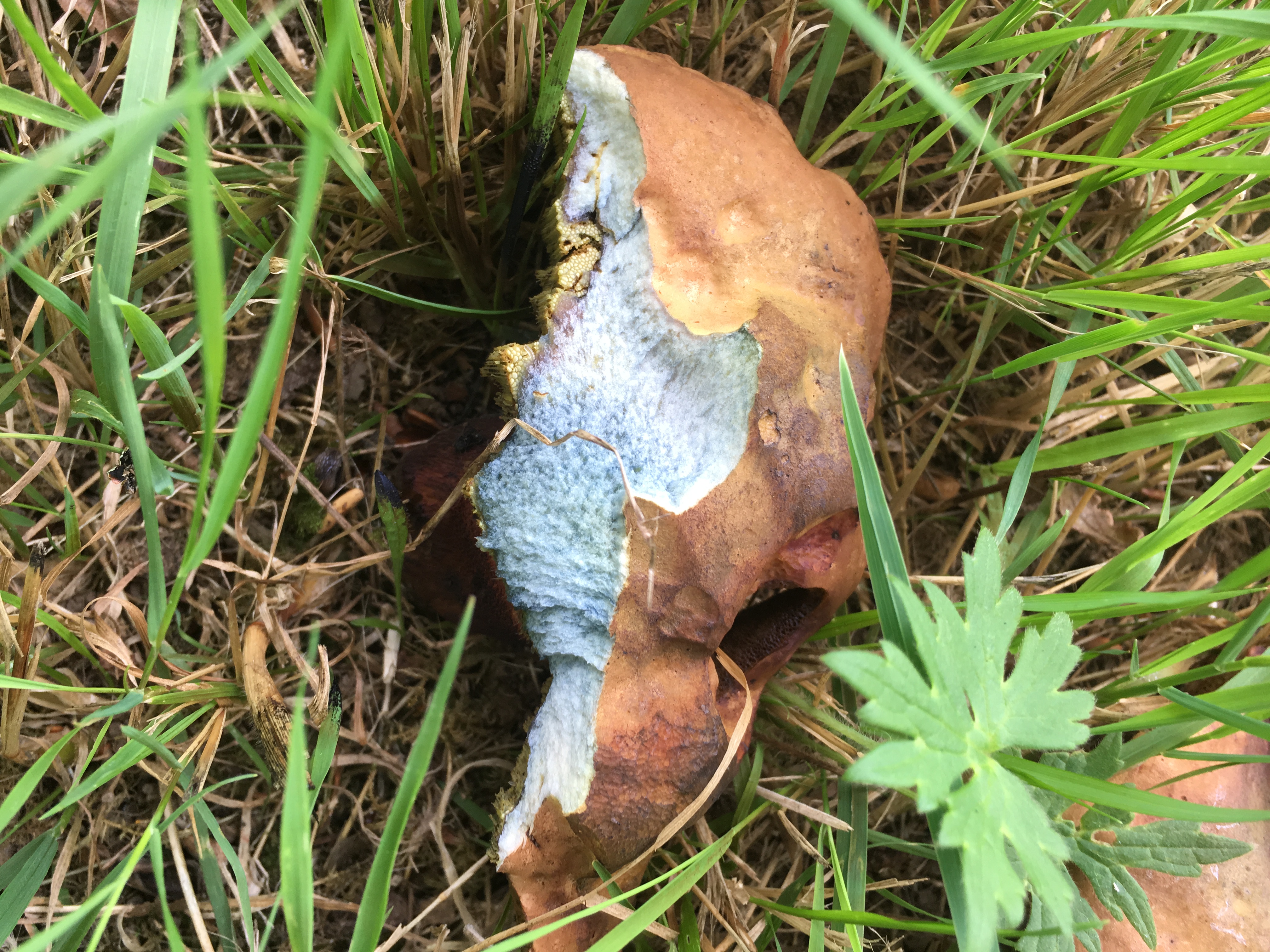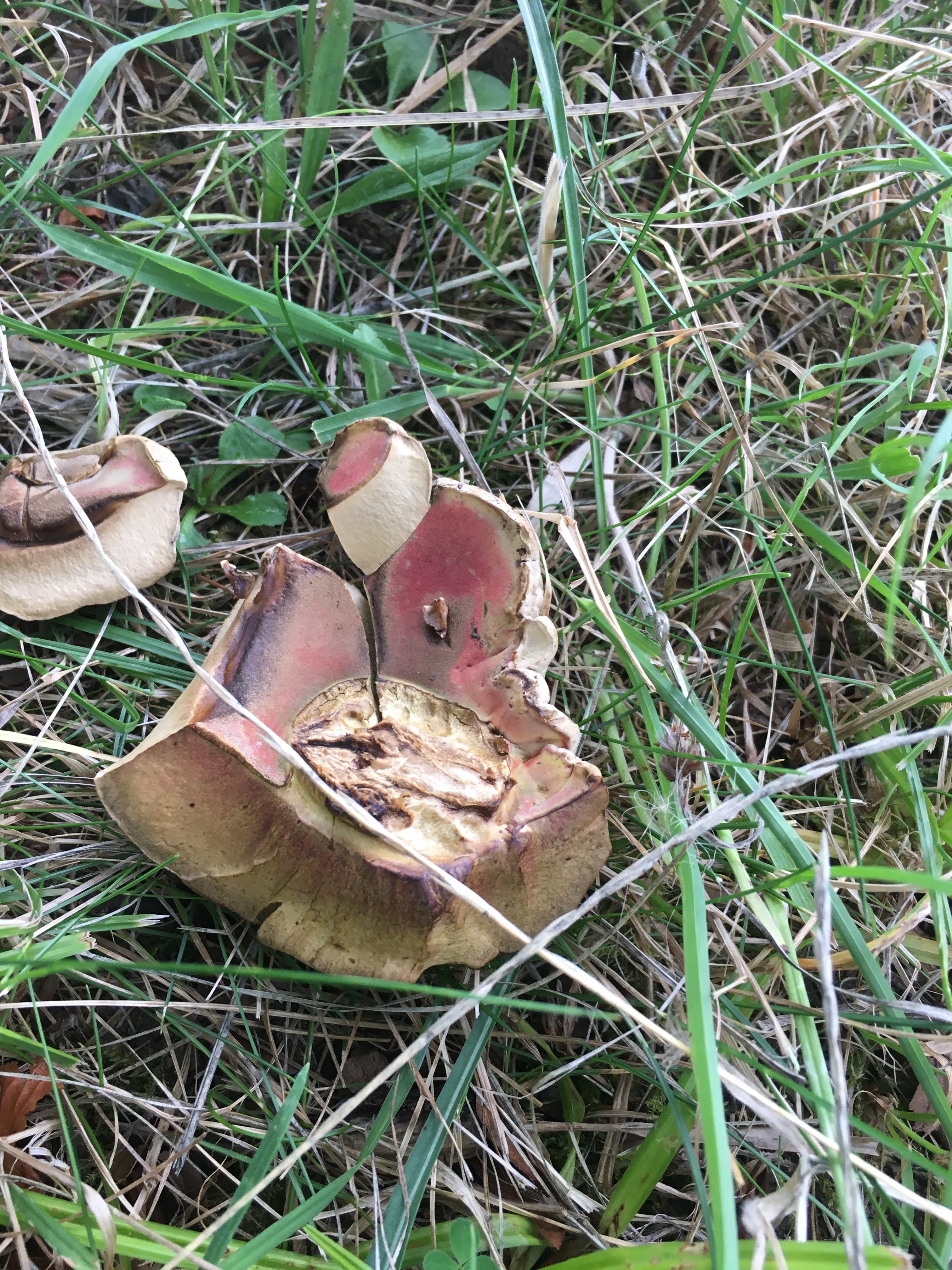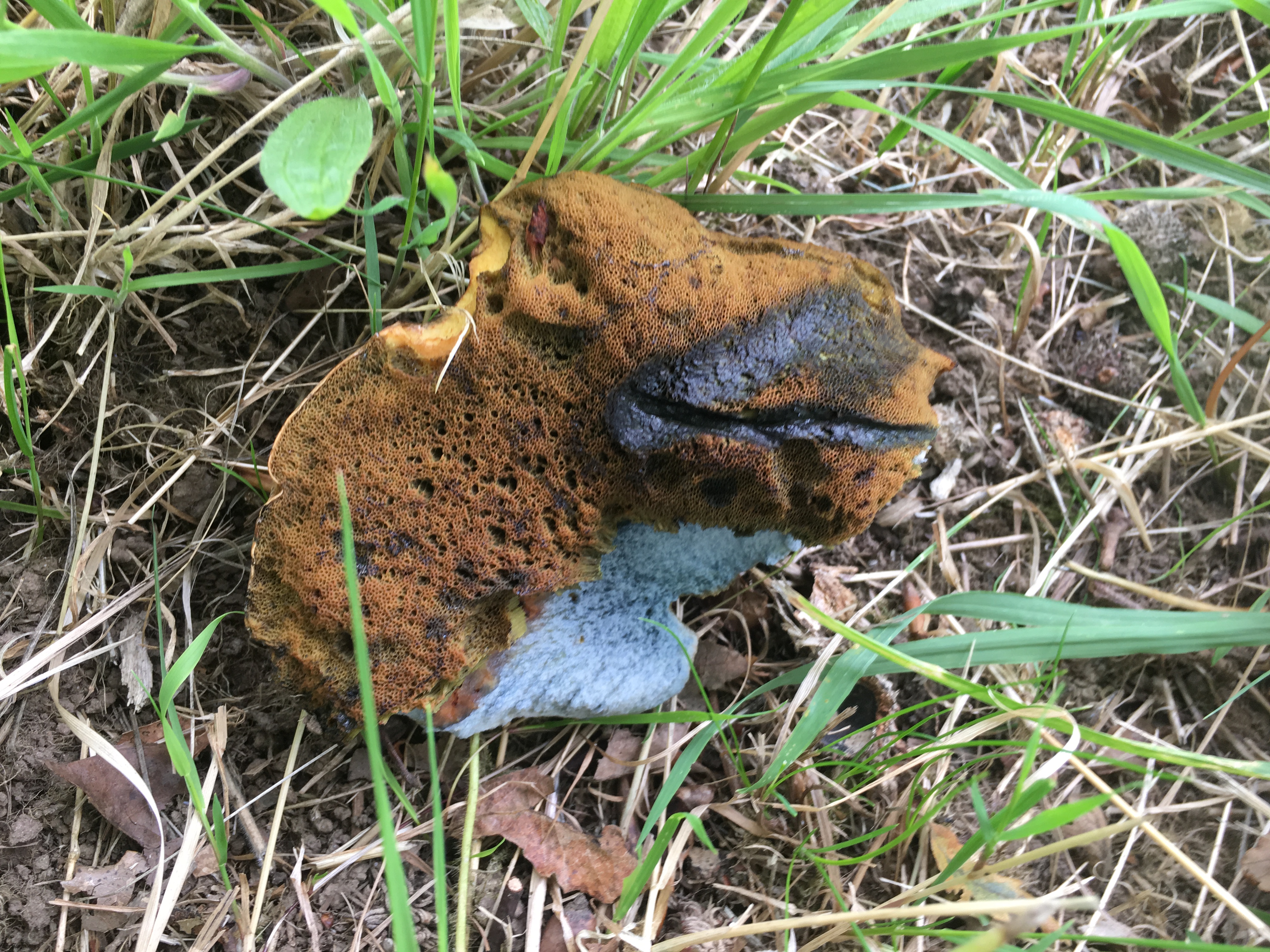 So boletes are cool. It was clear that someone had been interested in them before we came along because a few were already uprooted. Their bulbous stems are particularly distinctive. Some of them can have the red and yellow colours we found. Some of them are edible, even delicious I’m told. But common consensus seems to be “Not the ones that turn distinctly and immediately blue” though. I think there are some distinctions and exceptions, but I find I am happy to just say if it turns blue forget about it, and definitely ones that are yellow, orange or red under the cap that turn immediately blue on bruising. There are experts who know the exceptions to this rule but I sure as anything am not even the slightest bit expert so I’ll happily just look and show interest and try to learn more about them, happily leaving them exactly where I found them.