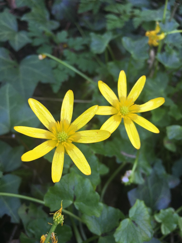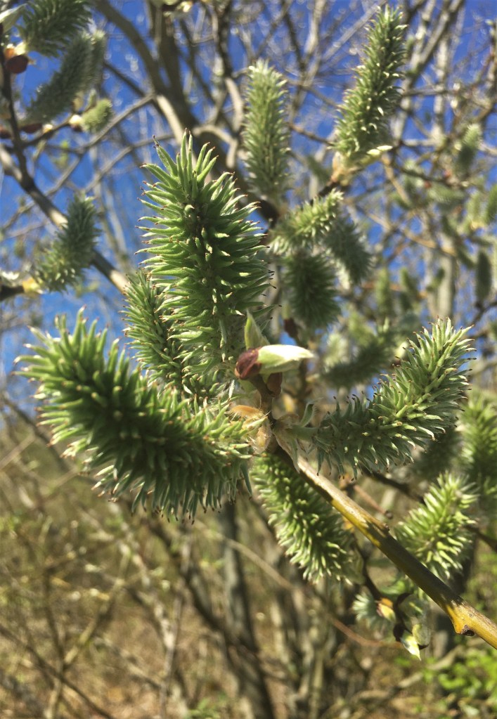 So yeah, the history that I like to read is the history of people who poked at things and figured out how to be comfortable in their living spaces, to adapt to using things around them in clever, sometimes small but significant ways. That’s probably why I’m fascinated with things like making pigments, metal working, glass work, forestry and wood working and so on. As I went on my within-2km-allowed walk today I was delightedly enjoying the rich yellow of the dandelions and reflecting on how reviled they tend to be, probably, in part at least, because of their sheer abundance. They are gloriously bright after winter and I was thinking about how yellow is not really a colour people tend to go for and why that might be. Yellow medieval style garb in SCA circles really stands out, it sort of adopts it’s own authenticity just by being so bright and looking straight from illumination. I’ve learned that nature provides an abundance of ways to colour cloth yellow, easy and cheap ways, all around us. So what makes yellow unpopular? Why has yellow been associated with negative emotions and traits? Yellow flowers and plants in nature must seem like minor miracles to hungry pollinating insects in early spring. We are affectionate towards daffodils but we don’t treasure them the way we do other flowers. Once my eye was drawn to it it seemed as if yellow was dabbed in fiercely bright accents onto today’s more muted Spring colours, all the greensilver, cottonblue, mudroot and leaf ghost.
